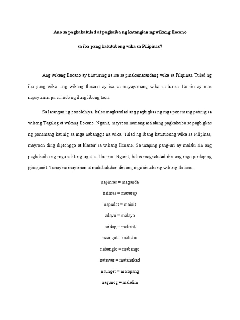 Katangian Ng Wikang Ilokano Pdf