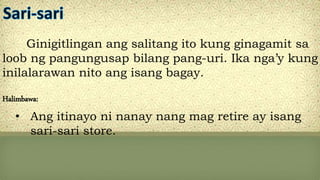 Isa lang ba ang salitang sari-sari. This preview shows page 23 - 25 out of 30 pages. Ang salitang bang ay ingles na ibig sabihin ay putok. Exactly really indeed definitely at actually ang kasing kahulugan.
