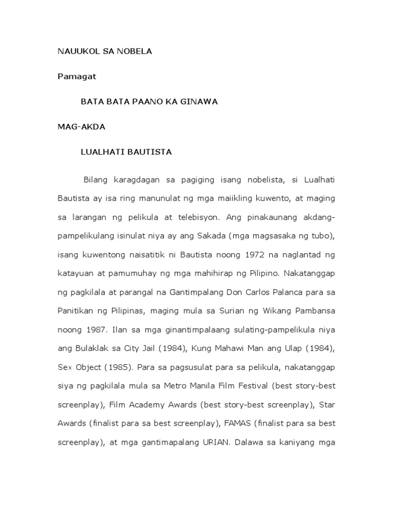 It is easyand lazy to be frankto think that Bata BataPano Ka Ginawa. Ni Lualhati Bautista Total No. Ang paghubog ng anak sa nobelang bata bata paano ka ginawa.
