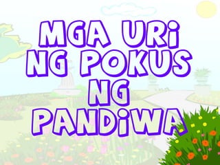 Ano ang binibigyang diin ng pokus ng sanhi. Ang aspekto ng pandiwa ay nagpapakita kung kailan nangyari nangyayari o ipagpapatuloy pa ang kilos. Pumunta ako sa tindahan Binili ko ang tinapay Tuon ng pandiwa Pokus o tuon ng pandiwa ang tawag sa relasyong pansemantika ng pandiwa sa simuno o paksa ng pangungusap.